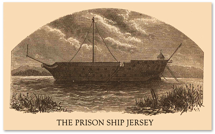 An early etching of the Prison Ship Jersey, which was moored in Wallabout Bay in what is now part of the Brooklyn Navy Yard.
